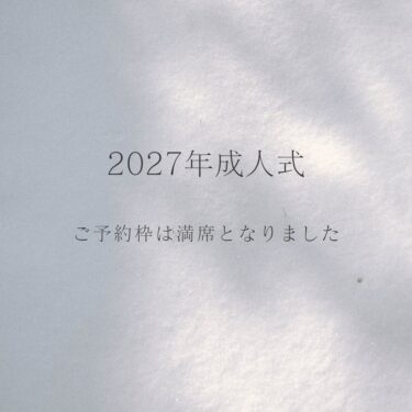 2027年成人式のお支度につきまして 本日より受付を開始いたしましたが、 想定より多くのご連絡をいただき、 現在ご案内できる枠はすべて埋まりました。 たくさんのお問い合わせ、ありがとうございます。 今後キャンセル等が出た場合は、こちらでお知らせいたし […]